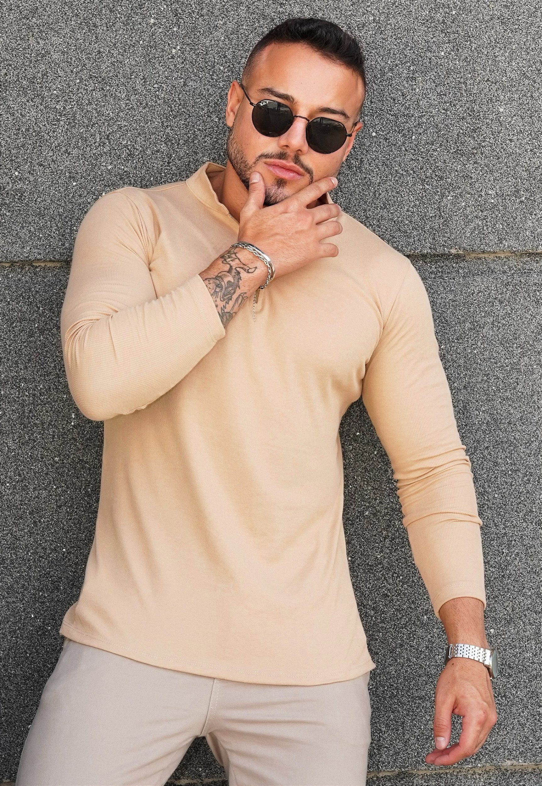 Blusa Zíper Manga Longa Bege