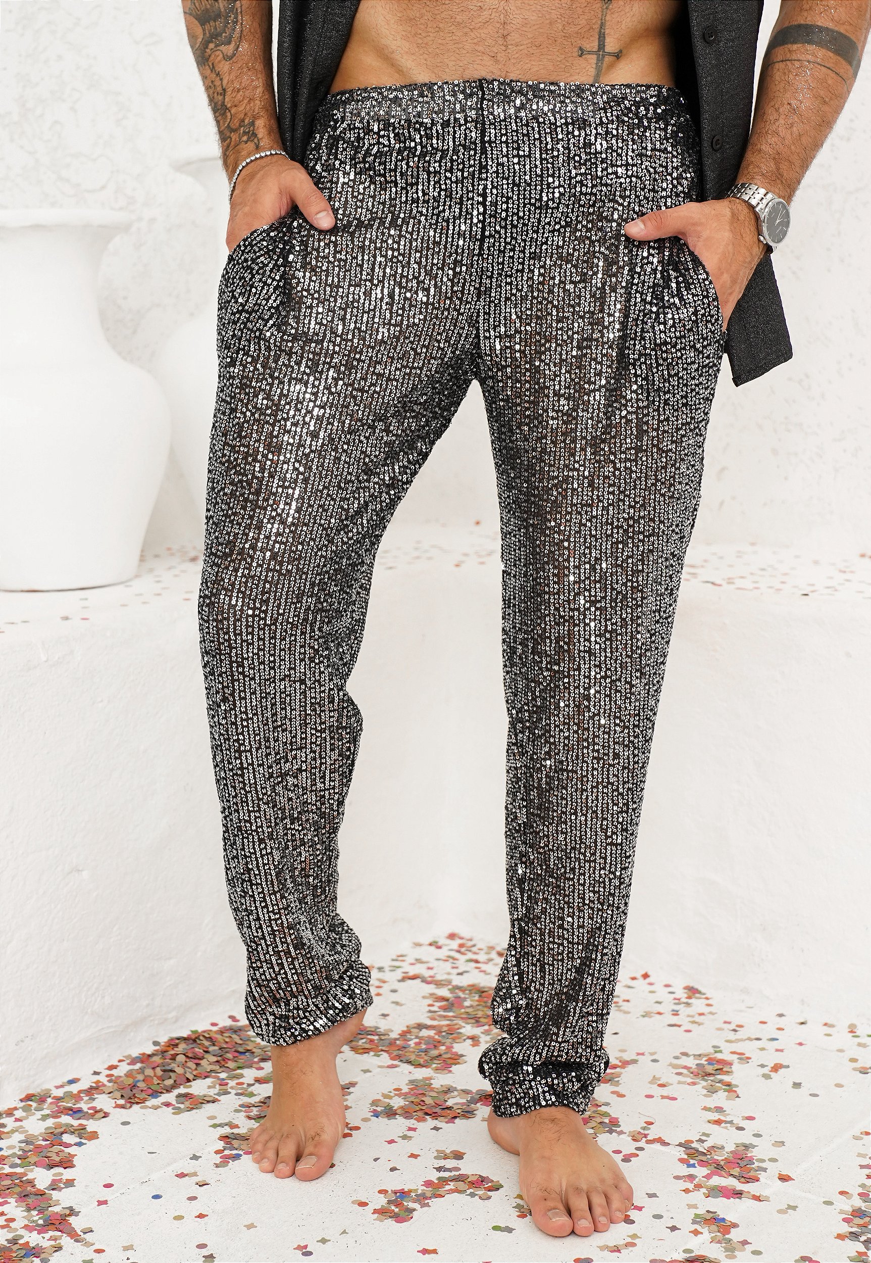 Confeccionado em tecido de paetê, o material apresenta brilho equilibrado e acabamento sofisticado. A aplicação cuidadosa dos paetês cria uma textura rica e uniforme, que reflete a luz de forma discreta e elegante, sem excessos. Ideal para peças que pedem destaque na medida certa, o tecido combina impacto visual, conforto e modernidade, valorizando o design e a presença da peça.