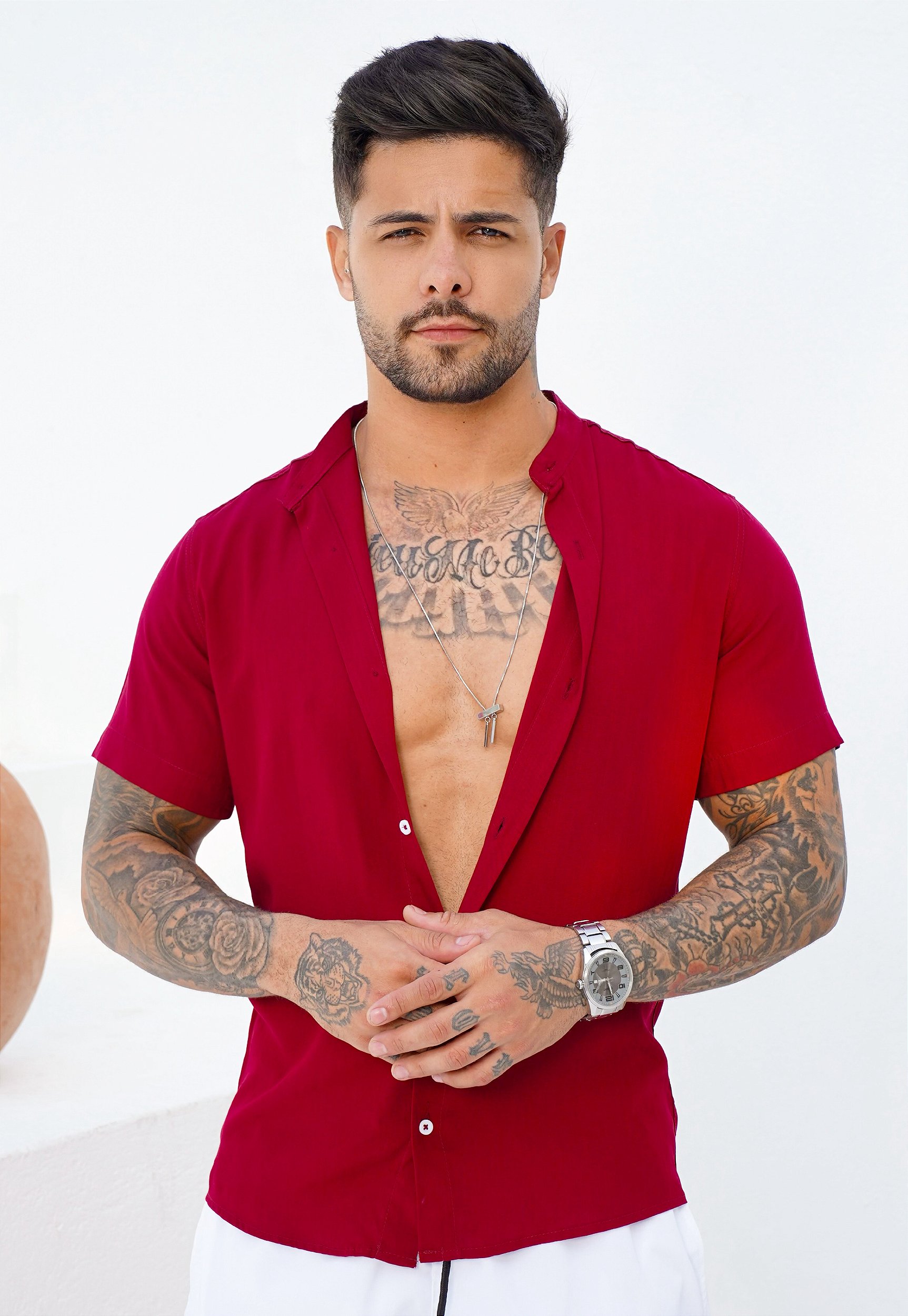 Camisa Viscolinho Gola Padre Vermelho Marsala