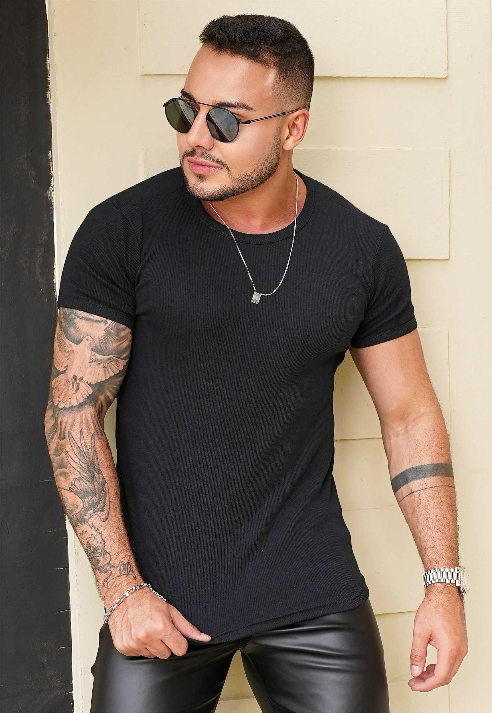 O tecido ribana é uma malha com textura canelada, caracterizada por suas faixas verticais que proporcionam elasticidade e ótimo ajuste ao corpo. Além de resistente, o ribana tem toque macio e um visual que agrega um detalhe sutil, mas marcante às peças, deixando o look mais estruturado e alinhado. Por ser durável e fácil de cuidar, é uma escolha prática para quem busca estilo aliado à funcionalidade no dia a dia.