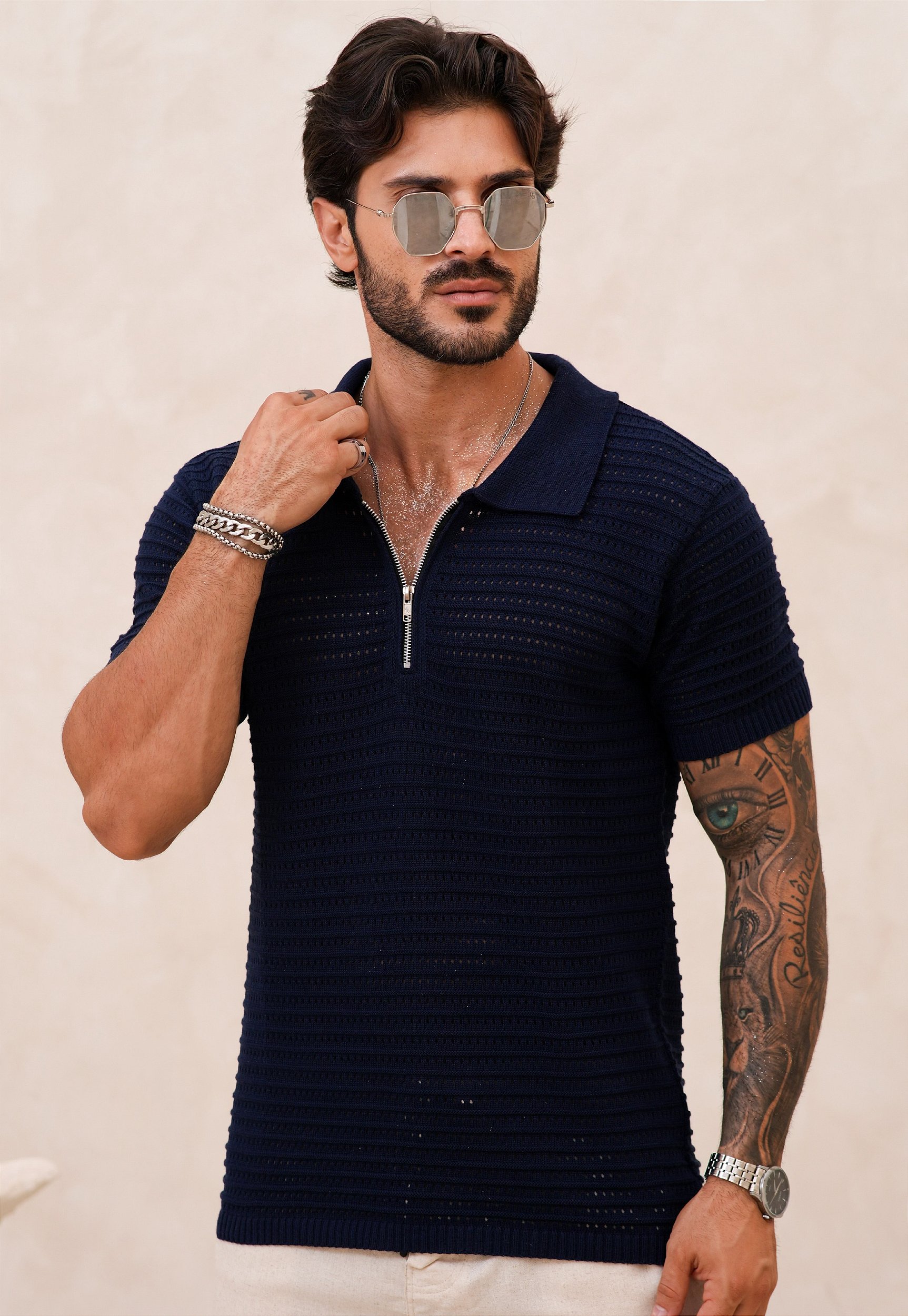 O tricot masculino é um tecido que combina conforto, versatilidade e estilo em uma só peça. Feito por meio de um processo de malha entrelaçada, ele oferece uma textura macia e flexível, que se adapta bem ao corpo sem perder a respirabilidade. Ideal para diferentes estações, o tricot pode variar em espessura, indo desde peças leves para o verão até opções mais encorpadas para o inverno. Sua elasticidade natural permite conforto ao longo do dia, enquanto o aspecto visual transmite uma imagem descontraída, mas sempre com sofisticação.