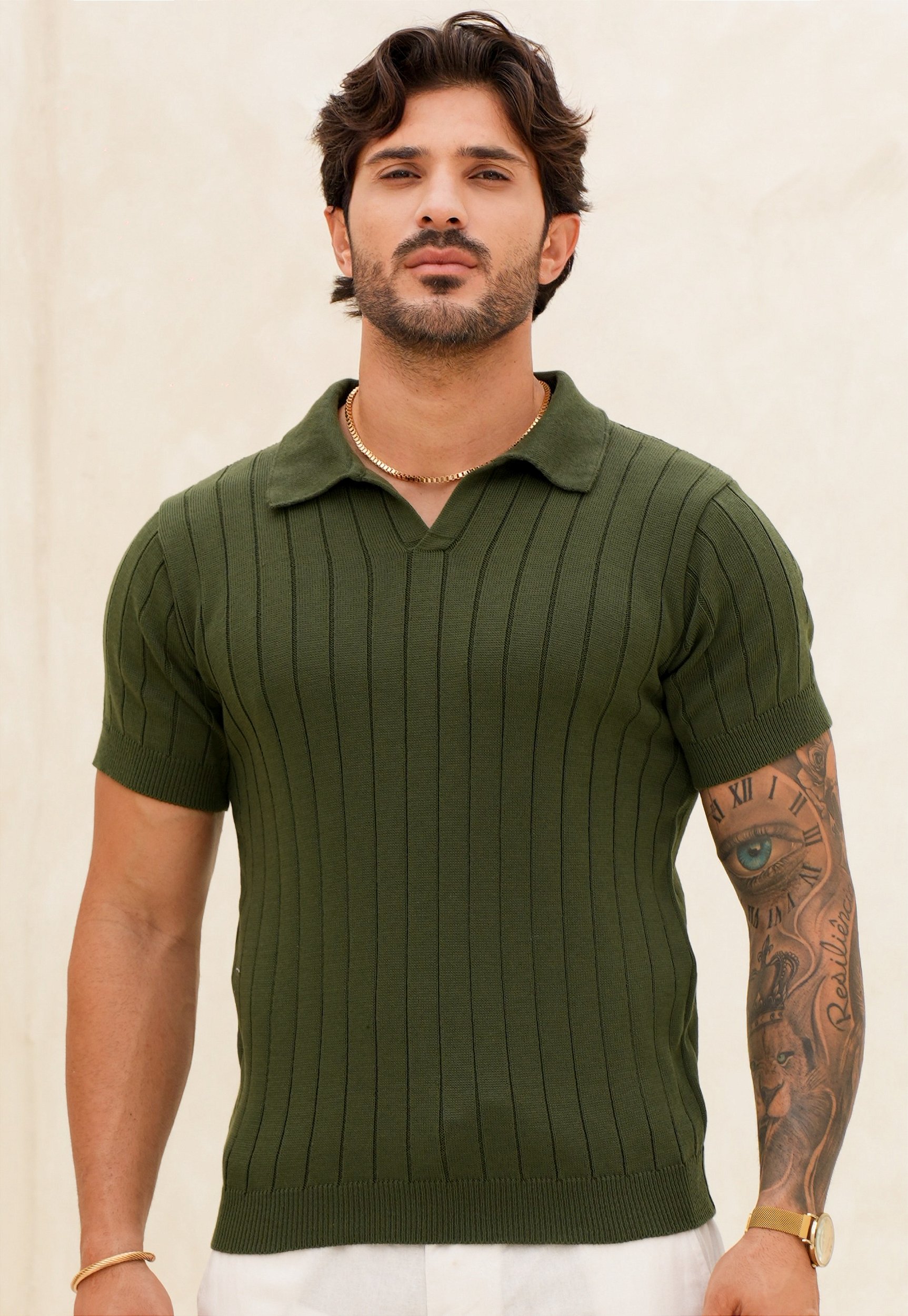 Camiseta Polo Tricot Verde Militar