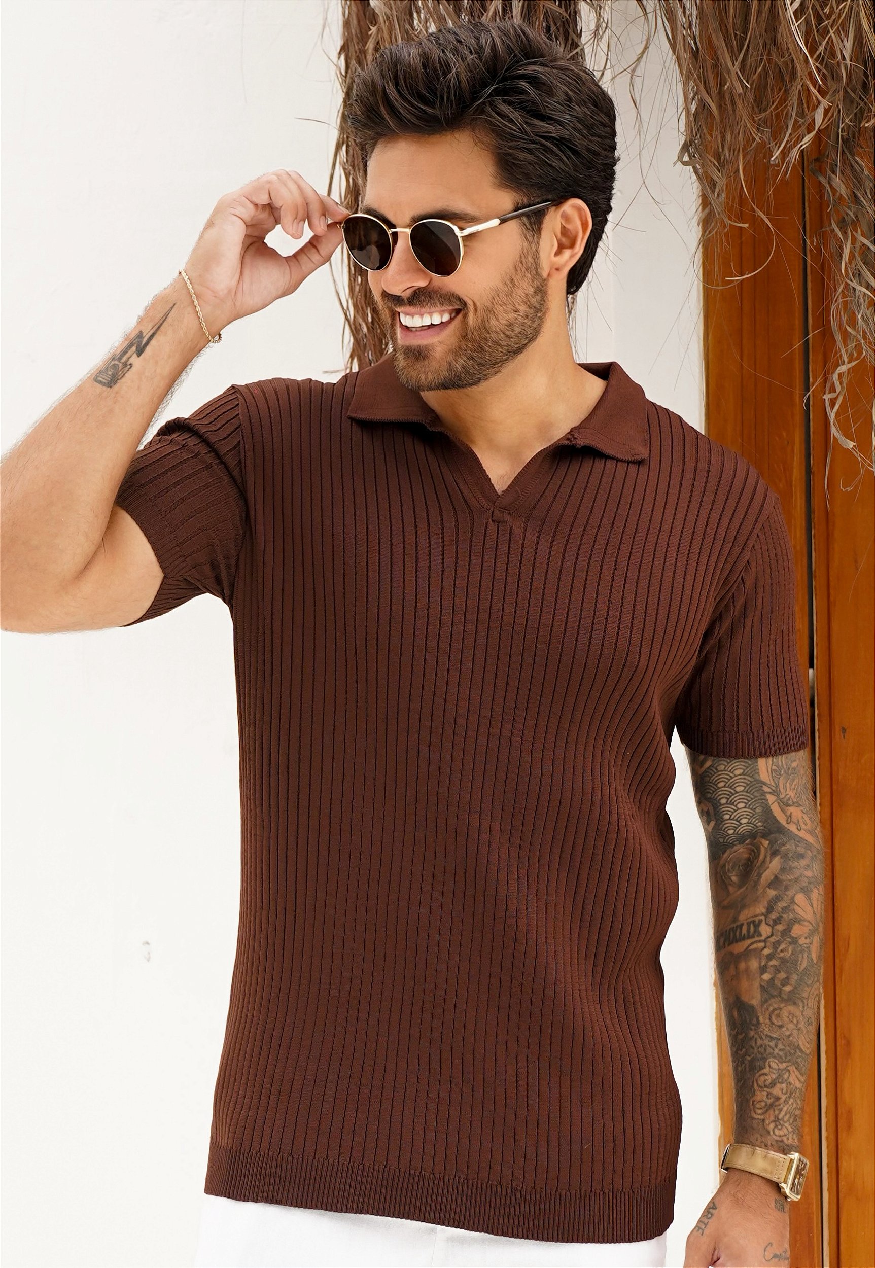 Camiseta Polo Tricot Marrom Café