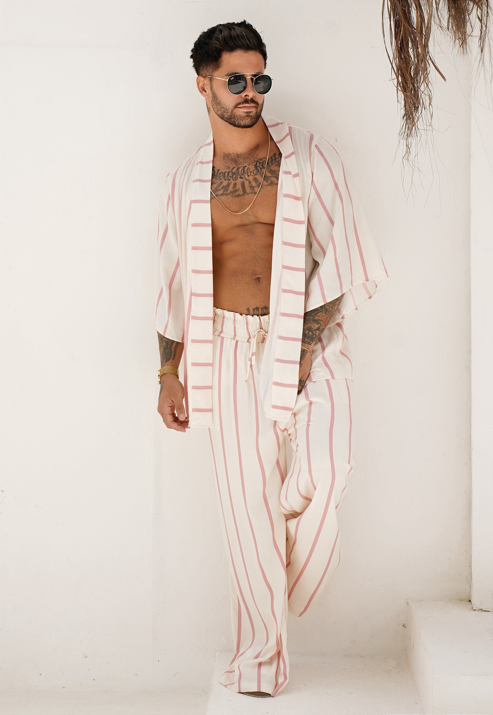 O viscolinho é uma mistura inteligente entre duas fibras: viscose e linho. Essa combinação resulta em um tecido que une o melhor dos dois mundos — o caimento leve e suave da viscose com a textura rústica e elegante do linho. No vestuário masculino, o viscolinho se destaca por proporcionar conforto térmico, toque macio e uma estética casual sofisticada, ideal para os dias mais quentes. Para o homem que busca peças versáteis, elegantes e confortáveis, o viscolinho é uma excelente escolha — une estética e funcionalidade com um toque natural e contemporâneo.