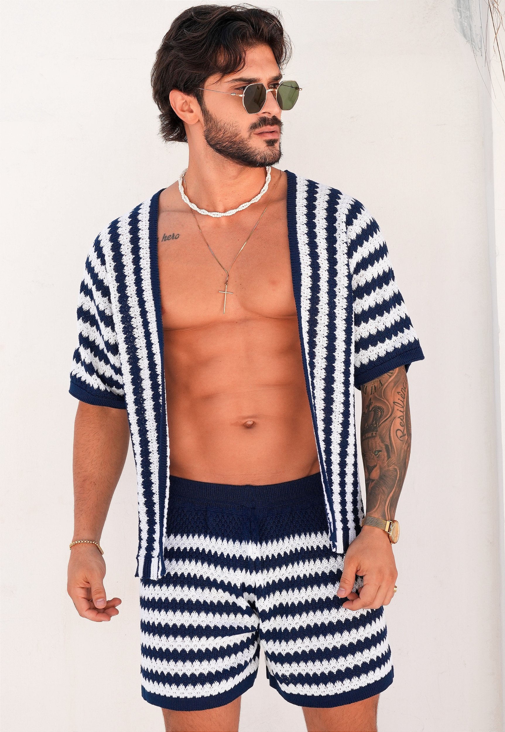 O tricot masculino é um tecido que combina conforto, versatilidade e estilo em uma só peça. Feito por meio de um processo de malha entrelaçada, ele oferece uma textura macia e flexível, que se adapta bem ao corpo sem perder a respirabilidade. Ideal para diferentes estações, o tricot pode variar em espessura, indo desde peças leves para o verão até opções mais encorpadas para o inverno. Sua elasticidade natural permite conforto ao longo do dia, enquanto o aspecto visual transmite uma imagem descontraída, mas sempre com sofisticação.