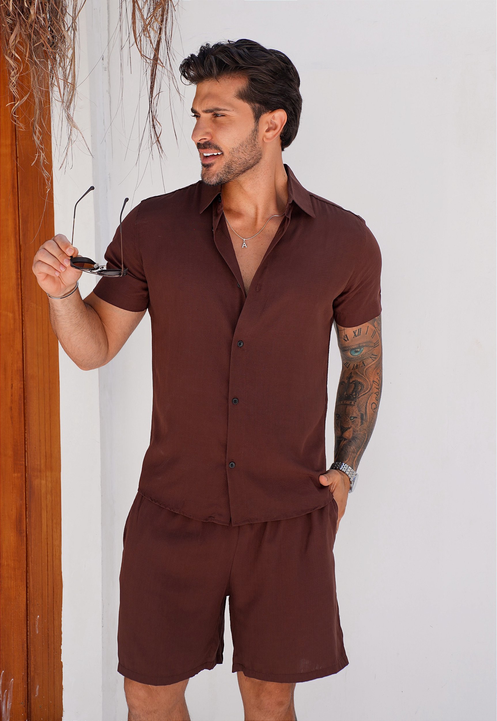 O viscolinho é uma mistura inteligente entre duas fibras: viscose e linho. Essa combinação resulta em um tecido que une o melhor dos dois mundos — o caimento leve e suave da viscose com a textura rústica e elegante do linho. No vestuário masculino, o viscolinho se destaca por proporcionar conforto térmico, toque macio e uma estética casual sofisticada, ideal para os dias mais quentes. Para o homem que busca peças versáteis, elegantes e confortáveis, o viscolinho é uma excelente escolha — une estética e funcionalidade com um toque natural e contemporâneo.