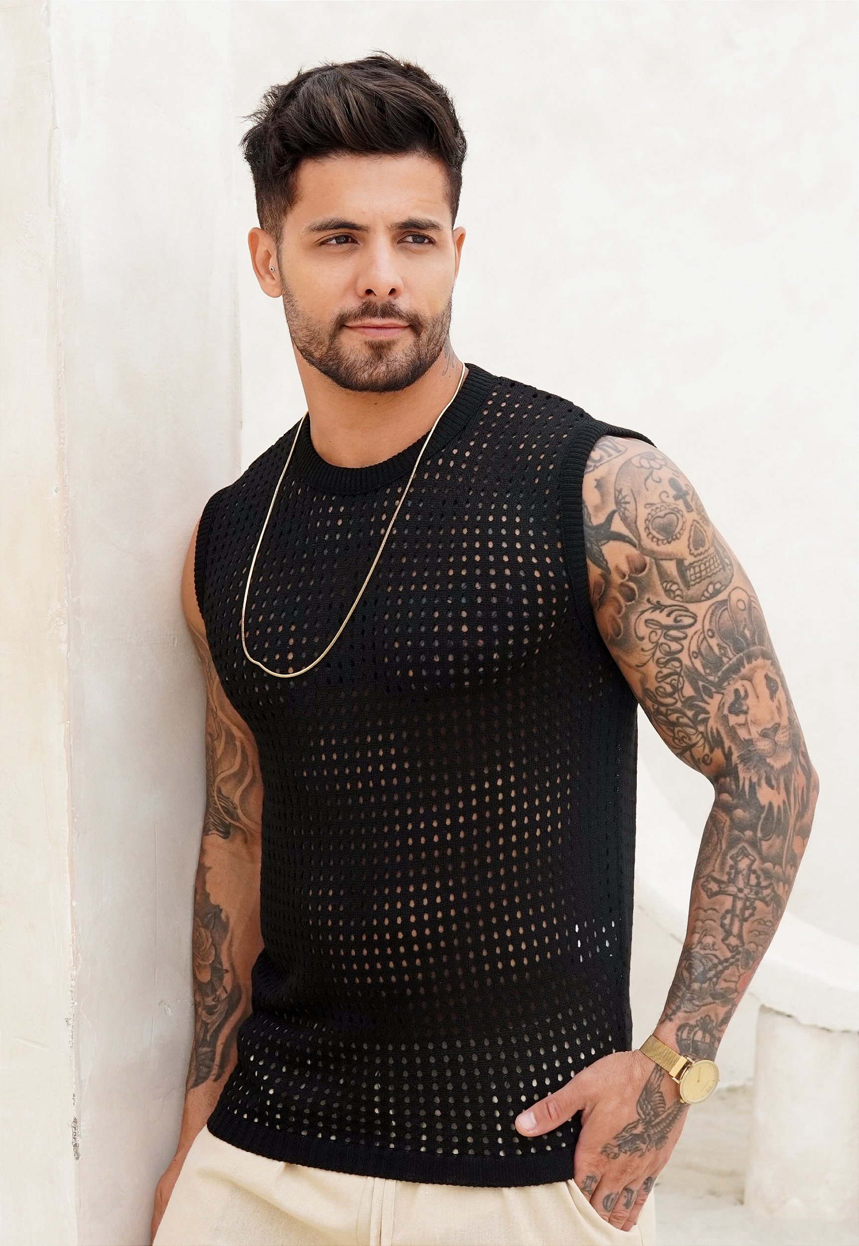 O tricot masculino é um tecido que combina conforto, versatilidade e estilo em uma só peça. Feito por meio de um processo de malha entrelaçada, ele oferece uma textura macia e flexível, que se adapta bem ao corpo sem perder a respirabilidade. Ideal para diferentes estações, o tricot pode variar em espessura, indo desde peças leves para o verão até opções mais encorpadas para o inverno. Sua elasticidade natural permite conforto ao longo do dia, enquanto o aspecto visual transmite uma imagem descontraída, mas sempre com sofisticação.