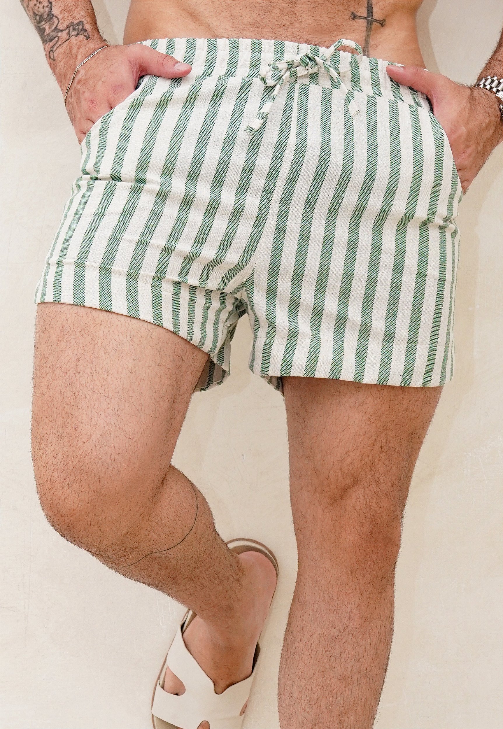 Shorts Linho Listrado Verde
