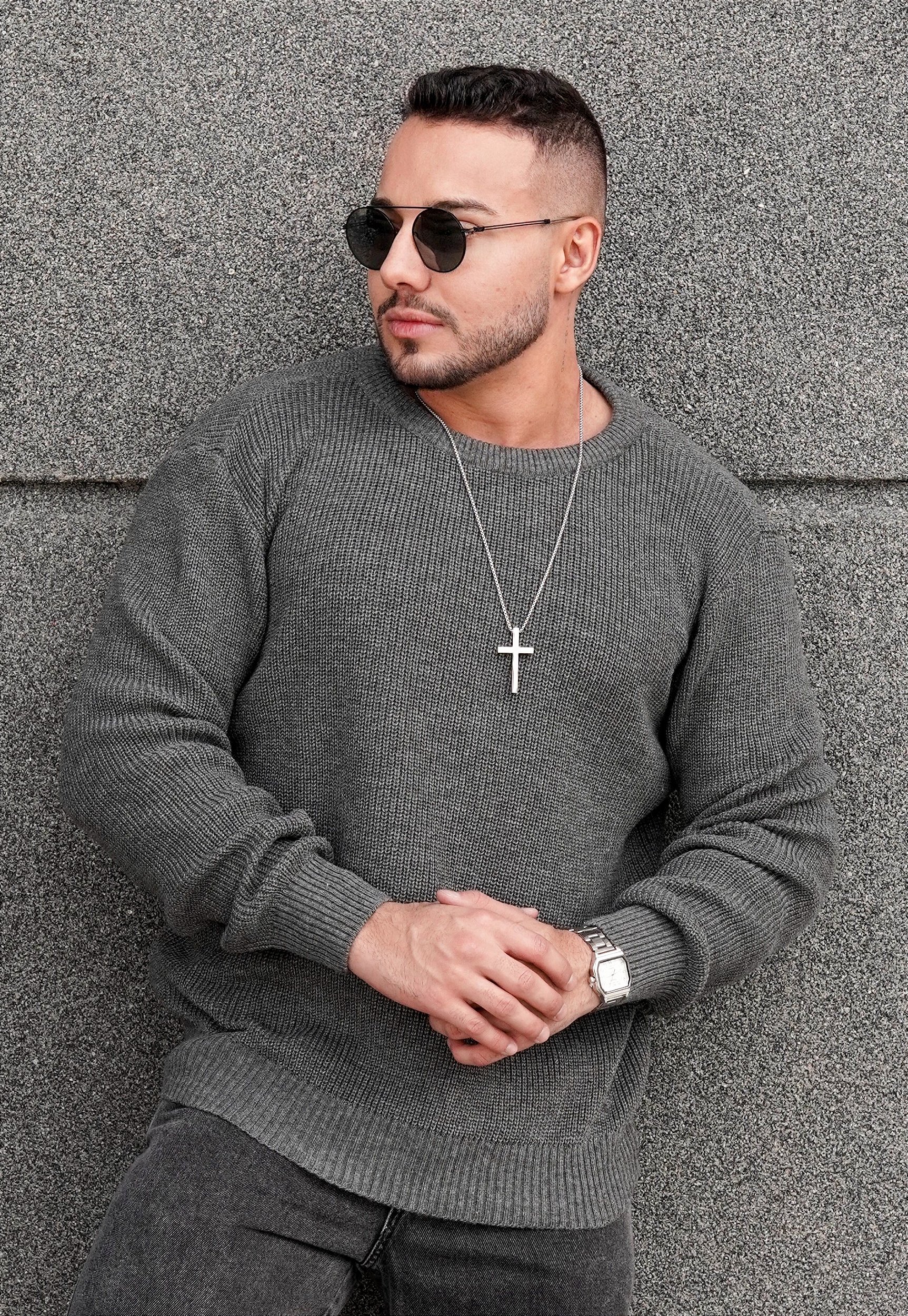 Suéter Tricot Cinza Grafite